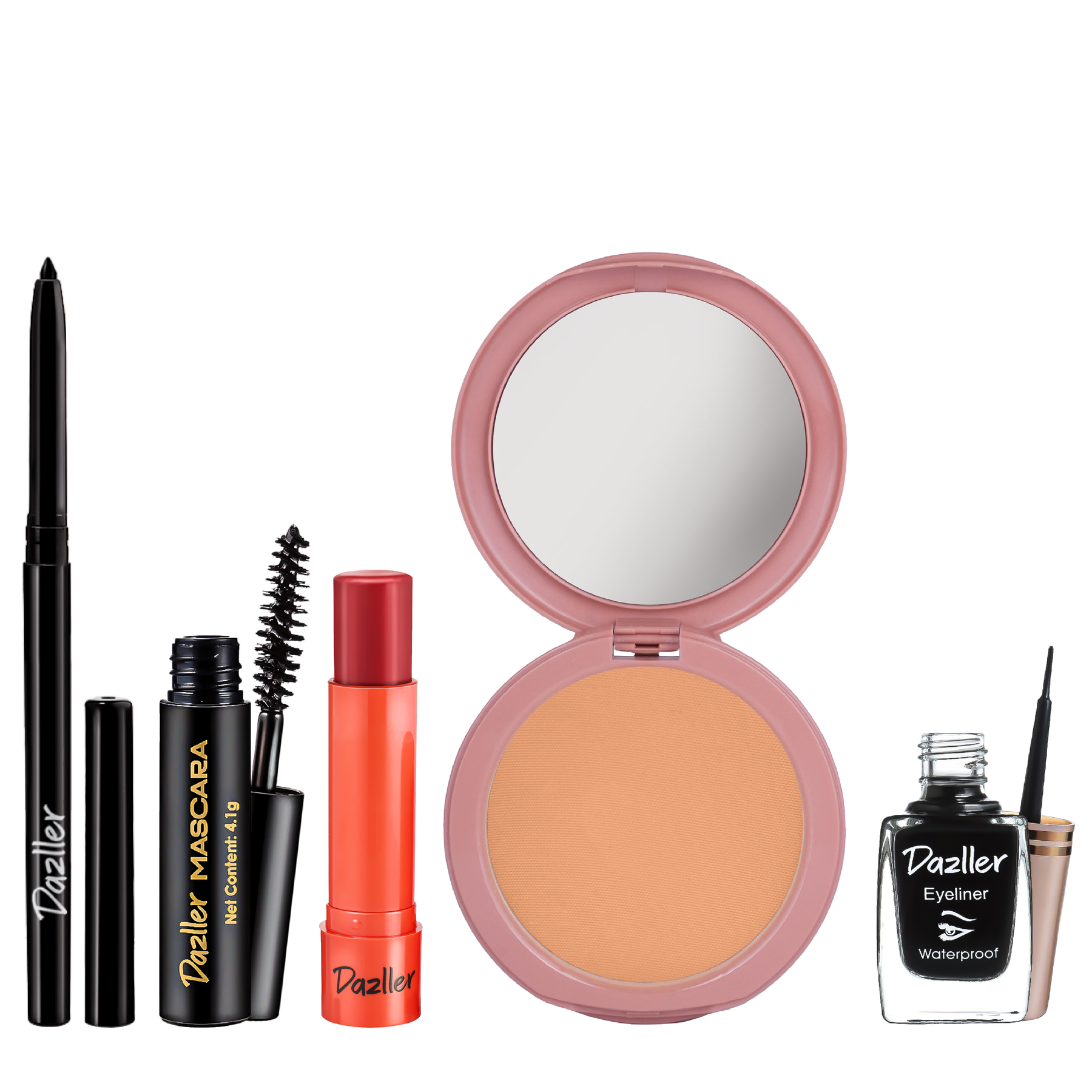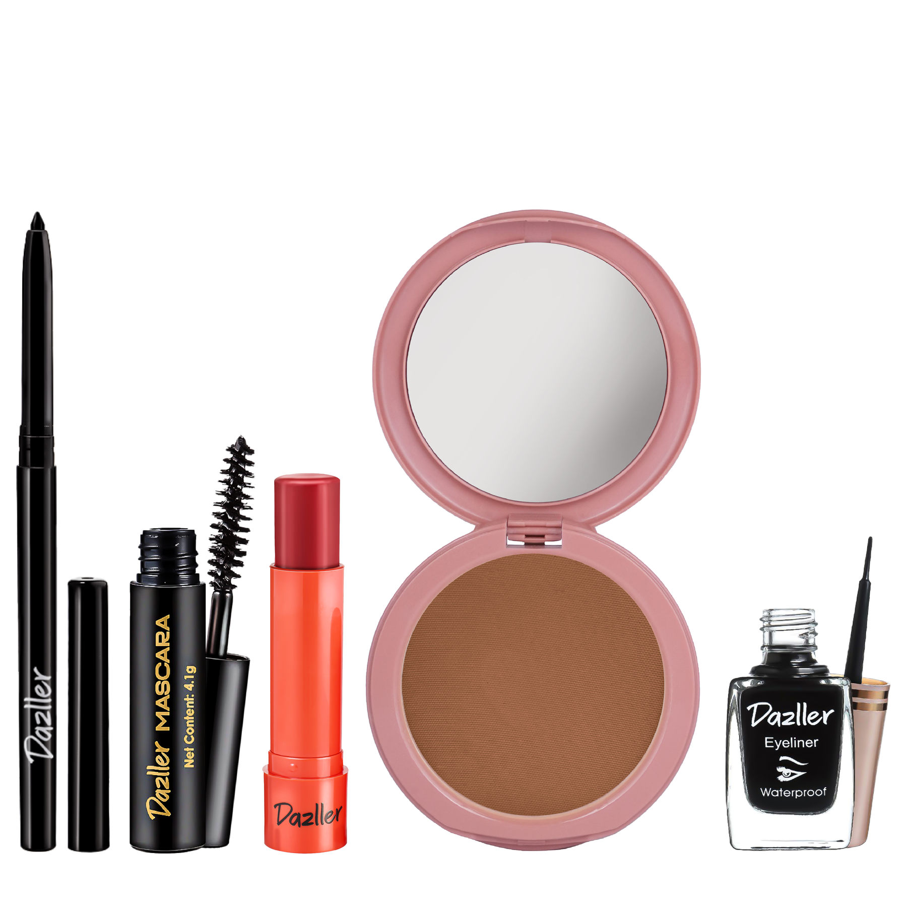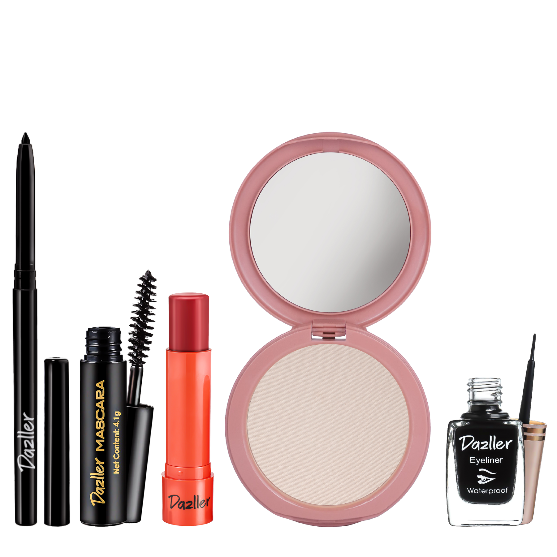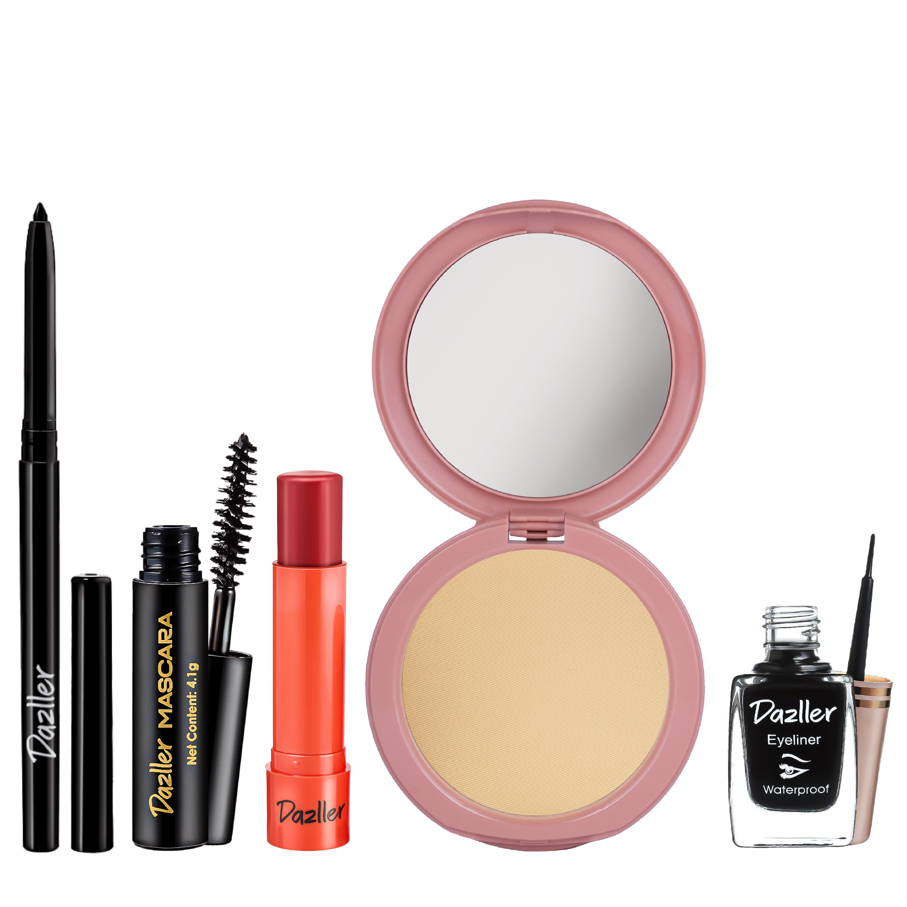 Eyeliner: Aqua, Pigments contain: CI No. 77499 (and) CI No. 77266, Styrene/Acrylates copolymer, Aqua (and) Acrylates / ethylhexyl acrylate copolymer (and) Phenoxyethanol (and) Silica, Propylene glycol, Glyceryl monostearate, Phenoxyethanol (and) Ethylhexylglycerin, Stearic acid, Xanthan gum, Rose extract, Bis-diglyceryl polyacyladipate-2, Triethanolamine, Aqua (and) CI No. 77266 (and) Butylene glycol (and) Laureth-20 (and) 1,2-Hexanediol, Benzoic acid (and) Sodium dehydroacetate (and) Caprylyl glycine (and) Undecylenoyl glycine, Astragalus gummifer gum, Allantoin, Chlorhexidine diundecylenate, Disodium EDTA, Phenoxyethanol.