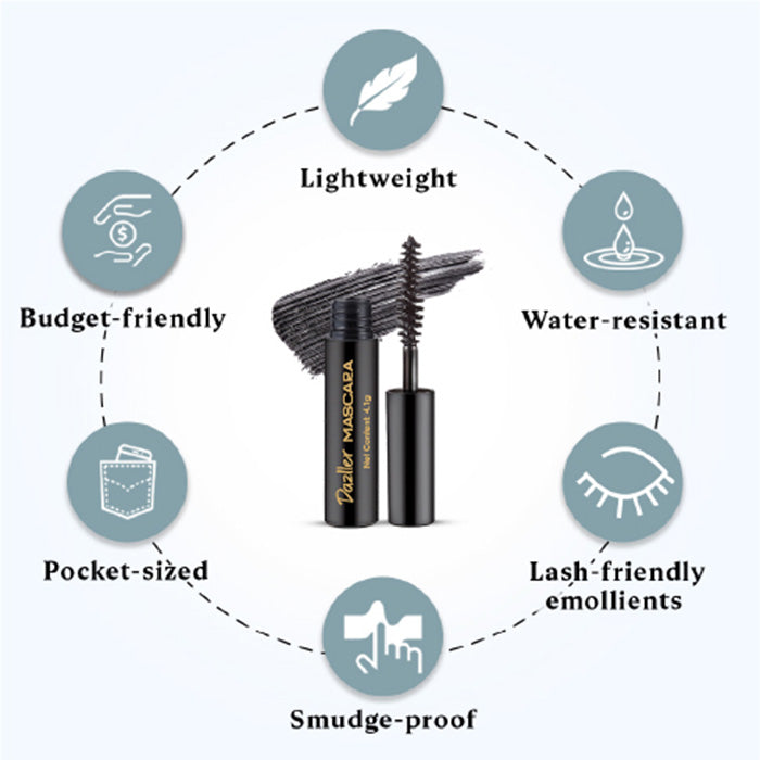 Mascara: Aqua, Pigments contains: CI No. 77499 (and) CI No. 77266, Propylene glycol, VP/Hexadecene copolymer, Synthetic beeswax, Stearic acid, Copernicia cerifera (Carnauba) cera, PVP, Bis-diglyceryl polyacyladipate-2, Glyceryl monostearate, Caprylyl gycol (and) ethylhexylglycerin, Polymethyl methacrylate, Phenoxyethanol (and) ethylhexylglycerin, Triethanolamine, Cyclopentasiloxane (and) trimethylsiloxysilicate, Dimethicone (and) trimethylsiloxysilicate, Magnesium aluminum silicate, Sorbitan olivate, Cellulose gum, Camphor, Disodium EDTA, Lauryl laurate, Xanthan gum.