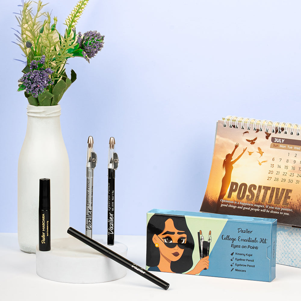 Item Name: Dazller College Essentials: Kreamy Kajal + Mascara + Eyebrow Pencil + Eyeliner Pencil